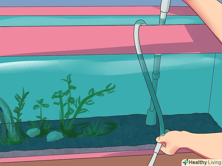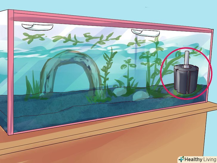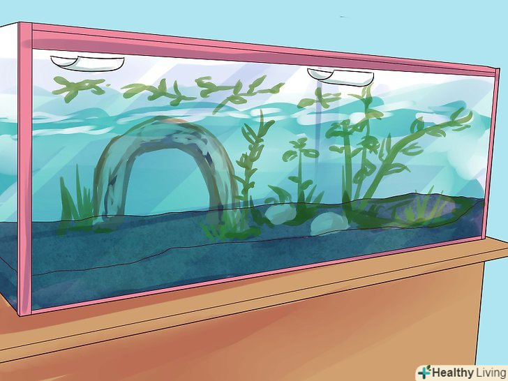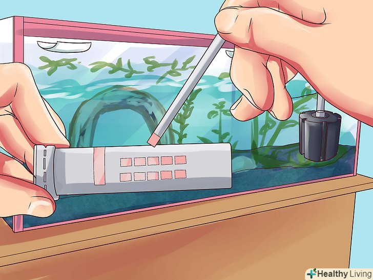 Налаштуйте температуру, скорегуйте кислотно-лужний баланс води і рівень нітритів у воді. відстежувати стан води можна за допомогою спеціального набору для акваріума. Робіть це протягом декількох днів до того, як помістіть в акваріум двох рибок. Створіть сприятливі умови заздалегідь, щоб нітрити і нітрати не потрапили в воду. [9] прогрійте Акваріум до 25-28ºc і переконайтеся, що pH-рівень води дорівнює 6.6-7.5 одиницям. Щоб знизити pH, додайте м'яку воду (наприклад, отриману в результаті зворотного осмосу), а щоб підвищити, покладіть у воду подрібнений вапняк, корали або інші речовини, що містять карбонат.- Увага : не можна пересаджувати рибу з акваріума з однією температурою в акваріум з іншою температурою. Слід поступово збільшувати температуру води, після того як познайомите рибок один з одним.
