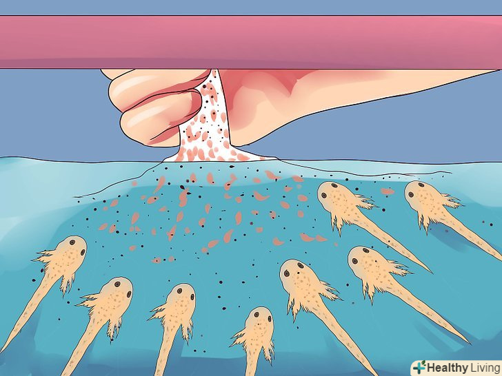 Давайте малькам тільки спеціальний корм. Мальки будуть занадто маленькими, щоб їсти звичайний корм. Спробуйте купувати в зоомагазині рідкий корм для рибок, коловерток, інфурозій. Можна також пропускати відварений жовток через марлю і давати малькам. Намагайтеся годувати їх якомога частіше протягом дня-6 разів або навіть більше.- Інфузорій можна вирощувати вдома. Покладіть невеликий шматочок салату або картоплини в банку з водою і поставте на сонці. Через кілька днів вода стане каламутною, потім прозорою, а після цього її можна буде давати малькам в невеликих кількостях. [13]