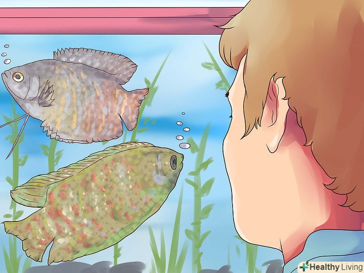 Визначте тип рибок. гурамі - це загальна назва сімейства, в яке входить більше 90 видів рибок. Більшості видів підходять одні і ті ж умови розведення, але так справа йде не з усіма видами. Попросіть досвідченого заводчика рибок або біолога оглянути ваших рибок, якщо ви не пам'ятаєте точну назву виду.- Поради з цієї статті підійдуть карликовим, перловим, цілуються, блакитним (з трьома плямами) і медовим гурами. Пам'ятайте, що цілуються гурами розводити складніше, і їм буде потрібно Акваріум більшого розміру.