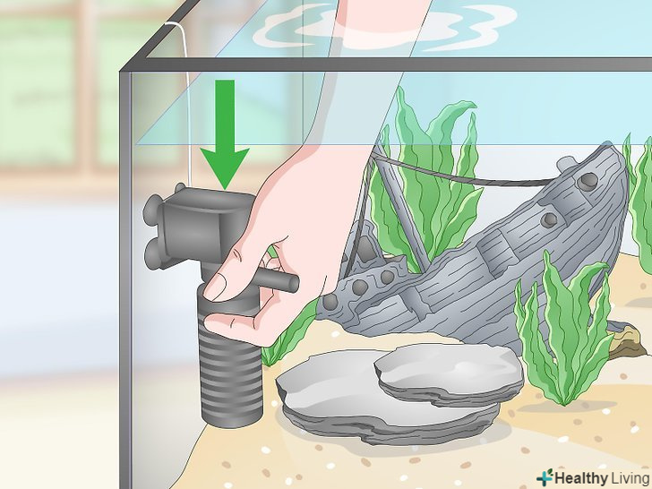 Встановіть в акваріум фільтр. акваріумний фільтр допоможе вам очищати воду від забруднень і підтримувати її в чистому і прозорому стані. Придбайте фільтр для акваріума в зоомагазині або замовте його через Інтернет і в точності дотримуйтесь інструкцій виробника по його установці. [10]- Існує багато різних типів фільтрів, які можна використовувати для підтримки чистоти і прозорості акваріумної води. Зберіть додаткову інформацію про відповідні системах фільтрації різної цінової категорії для акваріумів різного розміру, щоб визначитися з тим, що саме вибрати для свого акваріума.
