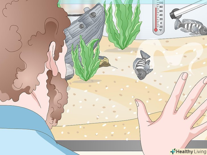 Слідкуйте за появою у риб симптомів захворювань. уважно наглядайте за рибами в наступні кілька днів, щоб переконатися в їх належної адаптації до нового акваріуму. Якщо риби здаються неактивними і малорухливими, переконайтеся в тому, що вони не захворіли і пролікуйте їх відповідним чином , якщо вони все ж прихворіли. [18]- Про те, що рибка відчуває стрес або погано себе почуває, можна зрозуміти за різними ознаками. Вона може відмовлятися від їжі, проводити багато часу біля поверхні води, залягати на дно. Така поведінка говорить про те, що з нею щось не так.