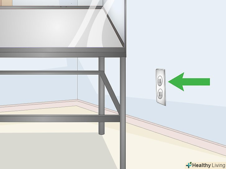 Переконайтеся в наявності електророзеток поблизу від акваріума. вашому акваріуму будуть потрібні водонагрівач, фільтр і підсвічування, які буде необхідно підключити до мережі. При виборі місця для акваріума переконайтеся, що поруч є необхідна кількість електророзеток — так вам не доведеться тягнути до нього Подовжувач через всю кімнату. [3]- Також вам слід простежити за тим, щоб вилки харчування важливого акваріумного обладнання (водонагрівача або фільтра) не могли бути випадково висмикнуті з розеток дітьми або іншими вашими вихованцями. Надійно ховайте зайву довжину проводів, щоб обладнання завжди залишалося підключеним.