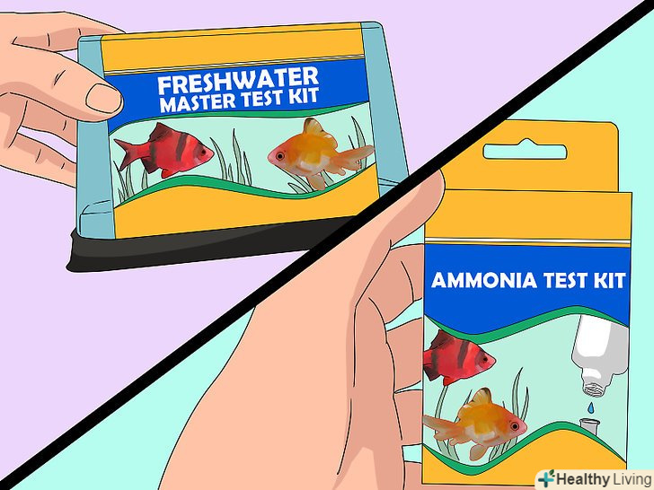 Придбайте набір для перевірки прісної води і комплект для вимірювання рівня аміаку. багато видів риб, у тому числі золоті рибки, чутливі до хімічного складу води. Якщо вміст аміаку, нітратів або нітритів вийде за допустимі межі, рибки можуть захворіти і навіть померти. Придбайте в зоомагазині або через Інтернет набір для контролю прісної води і комплект для вимірювання рівня аміаку в акваріумній воді. Уважно вивчіть прикладені вказівки щодо застосування і додаткову інформацію.