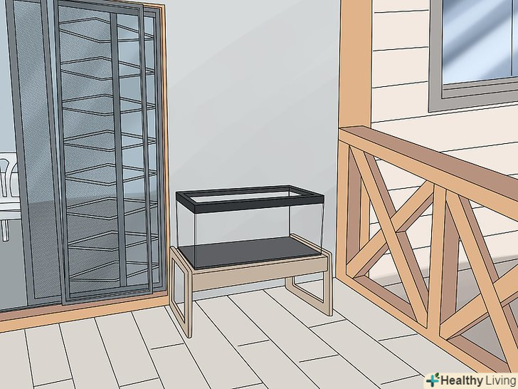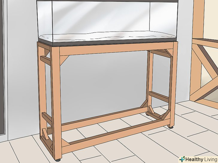 Надійно встановіть важкий Акваріум. акваріум з водою дуже важкий, тому знадобиться спеціальна підставка або досить міцні меблі. Якщо у вас дуже великий акваріум, встановіть його так, щоб його вага була рівномірно розподілений по балках підлоги. [3]- Сорокалітровий Акваріум важить близько 45 кілограмів.