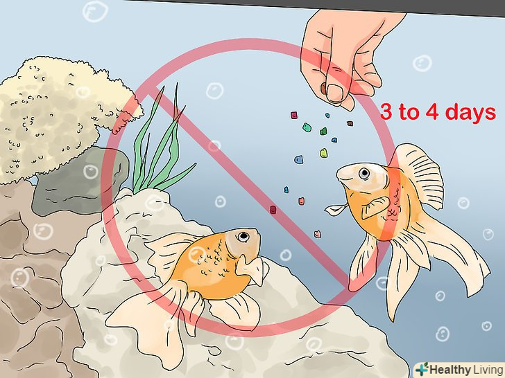 При необхідності скоротіть обсяги годувань. якщо у риби немає запору, то вона могла просто переїсти. Переїдання призводить до здуття живота і змушує рибу плавати на боці. Якщо у плаваючої на боці риби недавно був стілець, просто не годуйте її протягом трьох-чотирьох наступних днів. [9]