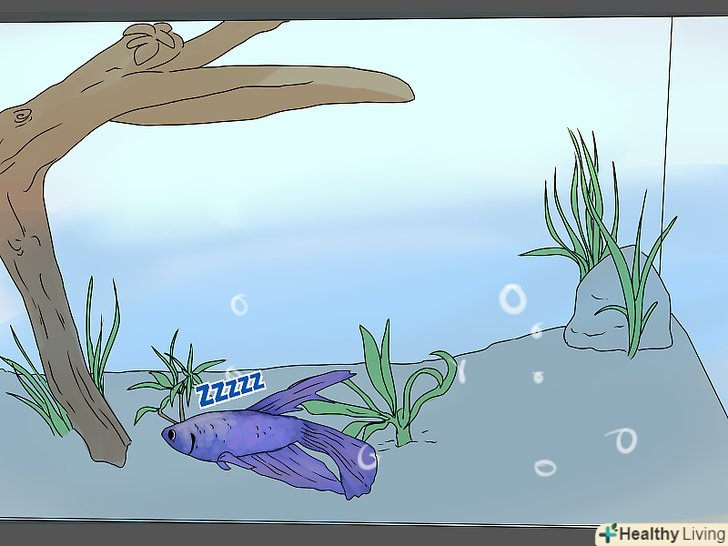 Вивчіть питання того, як спить ваша риба. коли риби сплять, вони припиняють рухатися. Наприклад, золоті рибки" лягають " на дно акваріума. Іноді у риб блякнуть кольору, особливо при вимкненому в акваріумі світлі. Пошукайте інформацію в мережі або почитайте книги по догляду за рибами вашого виду, щоб з'ясувати особливості їх сну. [10]- Корисну інформацію можна отримати на ветеринарних веб-сайтах, а також у ветклініках. Сходіть в бібліотеку або в найближчий зоомагазин, щоб знайти там інформативні книги. Якщо у вас є доступ до наукових публікацій, пошукайте відповідні статті в журналах з ветеринарії.