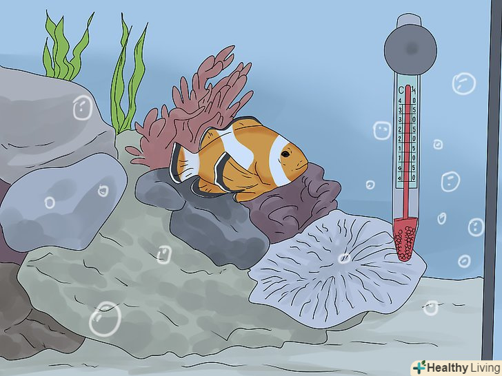 Слідкуйте за температурою води. якщо ви недавно міняли воду в акваріумі, знайте, що будь-який раптовий перепад температури може викликати у риб шок. Вимірюйте температуру води акваріумним термометром. Якщо температура води виявиться нижче 24-27 °C, збільште ступінь нагріву на акваріумному Обігрівачі. Знизьте нагрів, якщо температура підніметься вище згаданих меж. Шок у риб повинен пройти незабаром після того, як температура води нормалізується. [12]