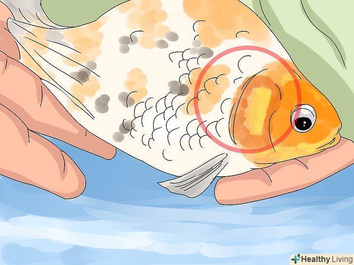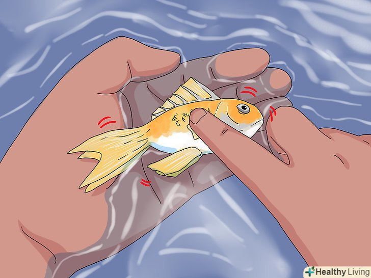 Огляньте луску риби. це необхідно зробити, якщо риба вистрибнула з акваріума. Зверніть увагу на потріскану шкіру, коли будете піднімати рибку. Обмацайте її тіло, щоб перевірити, чи не висохло воно. Ці ознаки характерні тільки для мертвої риби. [4]