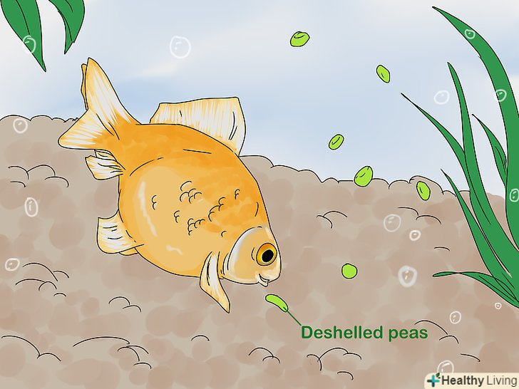 Вилікуйте запор за допомогою лущеного гороху. Запор змушує риб плавати на боці. У лущеному горосі (будь-якого сорту) міститься достатньо клітковини, щоб відновити травлення. Якщо у риби протягом декількох днів не спостерігалося стільця, почніть давати їй кожен день по дві-три свіжих або розморожених горошини. Горох можна попередньо розчавити або просто дозволити йому потонути на дно акваріума. [8]- Утримайтеся від застосування консервованого гороху, так як в ньому містяться сіль і спеції, здатні завдати шкоди вашій рибі.