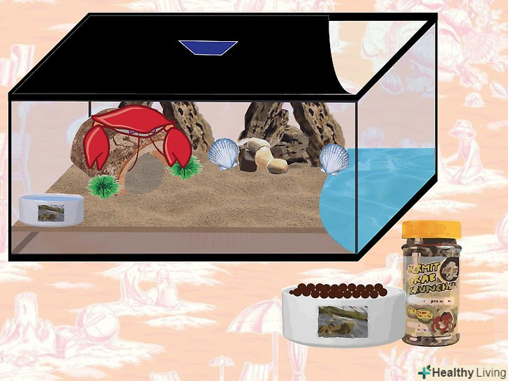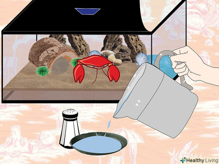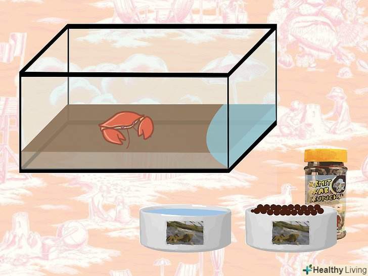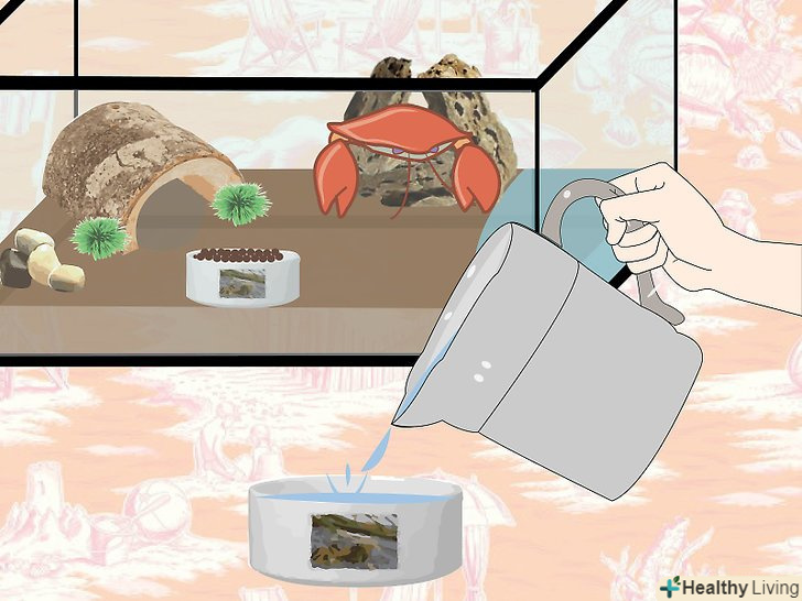 Наповніть дві чаші крабовим кормом і водою. не використовуйте водопровідну воду, вона не повинна бути хлорованою.