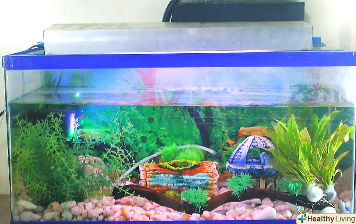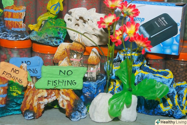 Додайте прикраси, камені або обладнання. ви можете купити все це зоомагазинах. Можна встановити в акваріум рослини, так як вони збільшать вміст кисню у воді. Корчі прекрасно підходять для акваріумів, вони створюють природне середовище проживання для риб і відмінно виглядають. Ви можете купити або знайти камені, щоб додати їх в акваріум, але їх може знадобитися часто чистити.