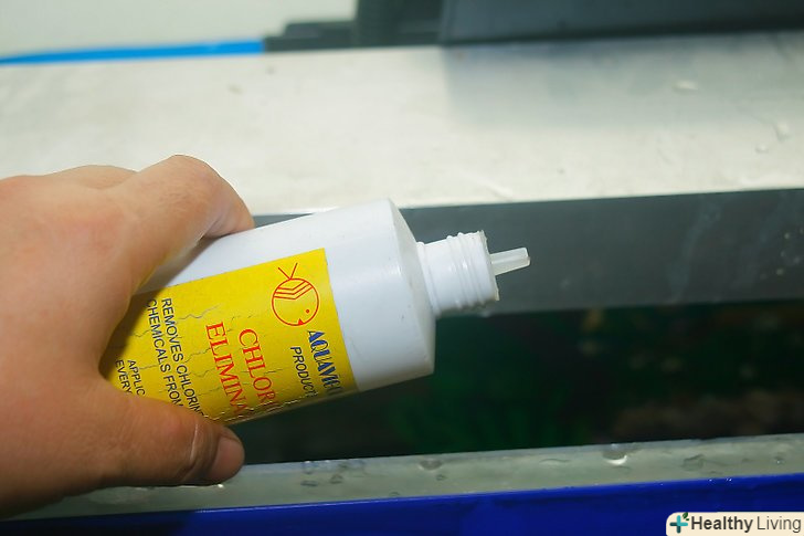 Заповніть акваріум водою до верху і додайте засіб для очищення водопровідної води , щоб зробити її безпечною для риб.