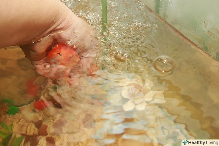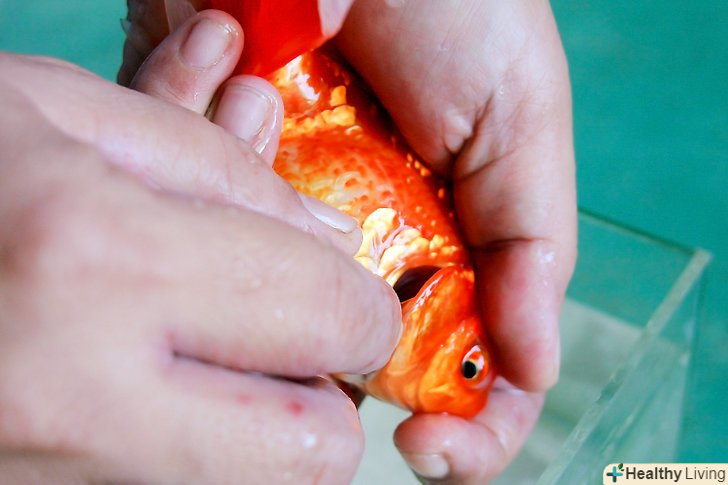 Обережно видаліть з рибки весь бруд і сміття. будьте обережні, щоб не порвати їй шкіру.