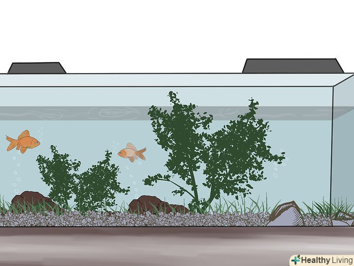 - Для декорування акваріума використовуйте тільки живі рослини – Валліснерію, Гідрилу і т.д. посадіть рослини в гравій або прив'яжіть до великого каменю, встановивши їх в центрі акваріума. Зазвичай золоті рибки воліють живі рослини штучним об'єктам. А деякі Акваріумні рослини навіть служать природною їжею для риб.