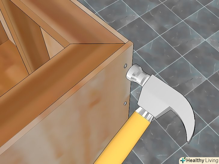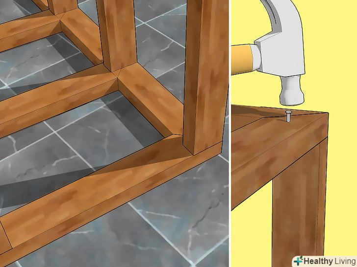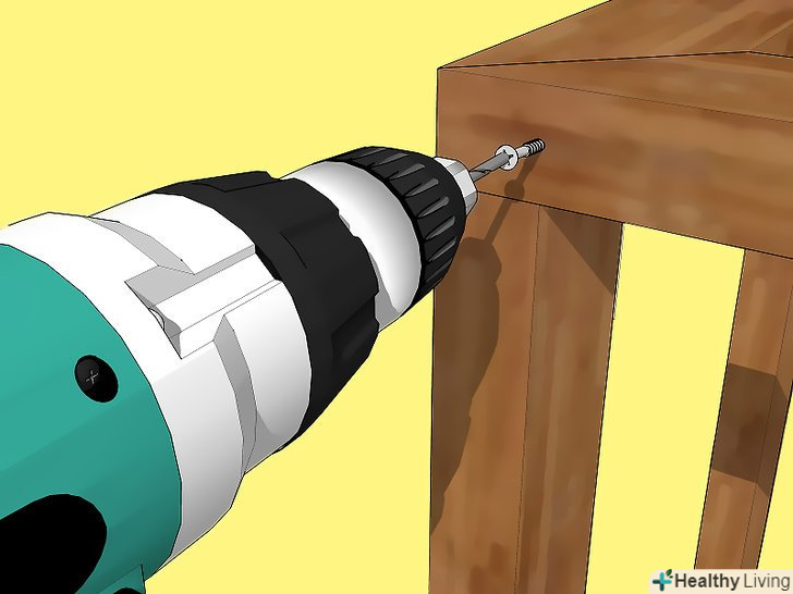 За допомогою перфоратора скрутіть кути каркаса. для цього використовуйте цвяхи по дереву розміром 2х3см. ви також можете скористатися клеєм по дереву, щоб з'єднати частини конструкції.