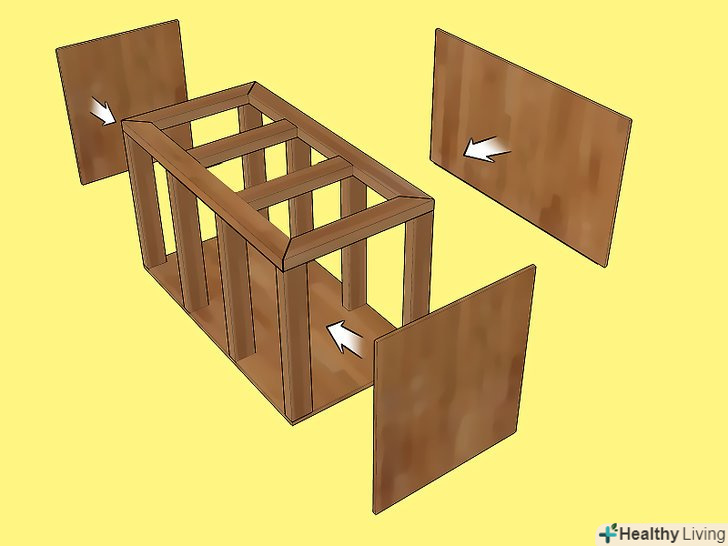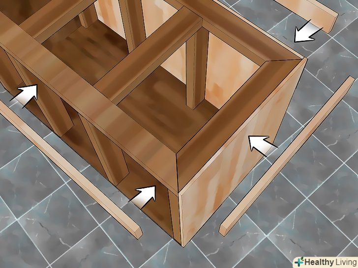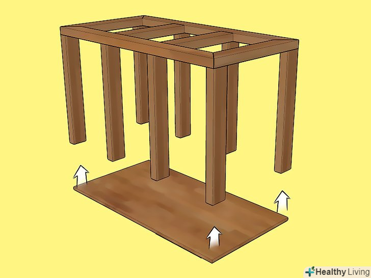 Виміряйте низ спорудженої конструкції. накресліть олівцем точну форму і розмір прямокутника на дерев'яному аркуші 1х2см і виріжте отриману форму за допомогою лобзика. Прикріпіть панель на низ каркаса за допомогою клею по дереву. Ви також можете використовувати декоративні цвяхи, щоб закріпити конструкцію.
