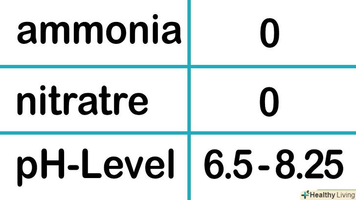Перш ніж запускати в акваріум золоту рибку, виконайте щонайменше одинБезрибний запуск циклу . При цьому в акваріумну воду додається аміак, а потім контролюється рівень нітратів. Такий цикл дозволяє переконатися в тому, що акваріум підходить для життя золотої рибки. На жаль, при приміщенні в новий акваріум рибки часто гинуть через отруєння аміаком і нітратами. Обов'язково додайте у воду дехлоруючий засіб, інакше міститься у водопровідній воді хлор погубить рибок.- Перш ніж запускати рибку в акваріум, слід переконатися, що все готово до її прийому. Взявши набір для контролю рівня pH і перевірте рівень аміаку, нітритів і нітратів в акваріумній воді. Необхідно, щоб концентрація аміаку і нітритів дорівнювала нулю, а вміст нітратів не перевищувало 20. Оскільки тестовими смужками непросто користуватися і вони досить недешеві, краще придбати електронний прилад для контролю акваріумної води.