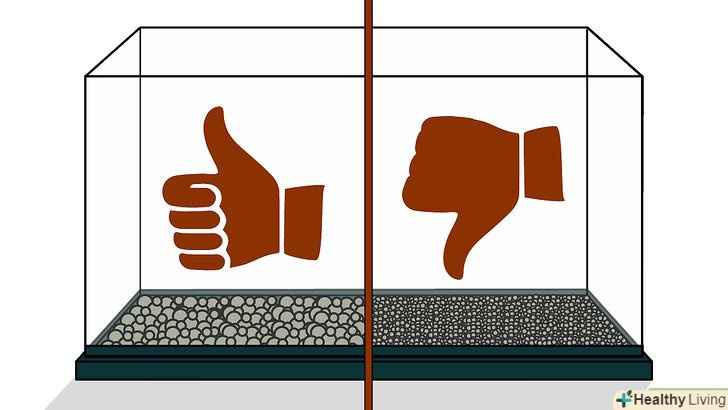 Використовуйте грунт, який не застрягне у рибки в горлі. Золоті рибки люблять хапати ротом камінчики з дна акваріума. Використовуйте або досить велику гальку, яку рибка не зможе проковтнути, або дуже дрібний грунт. Оскільки золоті рибки люблять ритися в грунті в пошуках впала їжі, краще використовувати велику гальку, яку ваша рибка не зможе проковтнути.- Перш ніж помістити грунт в акваріум, обов'язково почистіть його. Багато видів грунту для акваріумів слід попередньо мити, інакше вони можуть забруднити воду. Навіть якщо ви придбали свіжу гальку, її слід ретельно помити і витримати один день у воді, щоб видалити можливу бруд і бути впевненим, що вона не зашкодить вашим вихованцям. Ні в якому разі не користуйтеся при цьому миючими засобами.