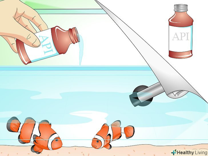 Обробляйте водопровідну воду. у водопровідній воді містяться хлор і хлорамін, які знезаражують її. Ці речовини токсичні для риб і пошкоджують їх зябра, що викликає у них стрес і хвороби.- Перш ніж залити водопровідну воду в акваріум, може знадобитися додати в неї тіосульфат натрію, який можна придбати в зоомагазині. Ця речовина нейтралізує присутній у воді хлор.