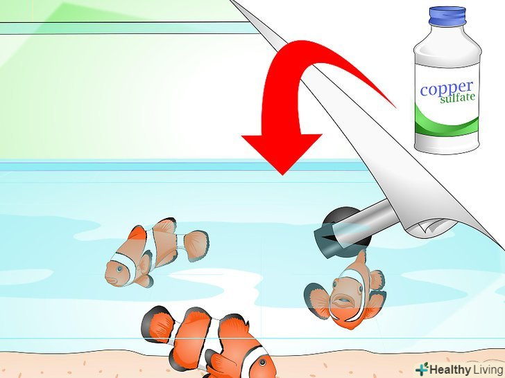Позбавтеся від паразитів. хвороба у рибок можуть викликати багато паразитів. Для позбавлення від паразитів найчастіше використовують засоби на основі формаліну і сульфат міді. Іноді досить просто змінити умови в акваріумі.- При іхтіофтіріозі застосовують засоби на основі формаліну, які містять малахітовий зелений, метиленовий синій або сульфат міді. [9]