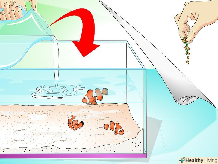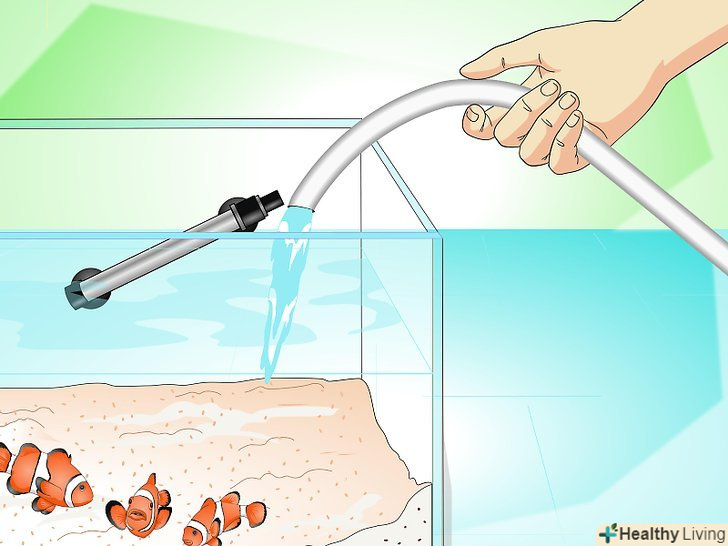 Регулярно міняйте частину води в акваріумі. це один з найбільш важливих моментів, оскільки нерегулярна заміна води в акваріумі є найбільш поширеною причиною хвороб акваріумних рибок. Перевіряйте якість води і концентрацію аміаку, нітритів і нітратів за допомогою набору для контролю акваріумної води, який можна придбати в зоомагазині. Таким чином ви будете знати, як часто і в якій пропорції слід міняти воду.- Ніколи не змінюйте всю воду в акваріумі за один раз. Нова вода буде мати інший склад, і рибки напевно зазнають стрес. За 24 години слід міняти не більше 1/3 всього обсягу води.