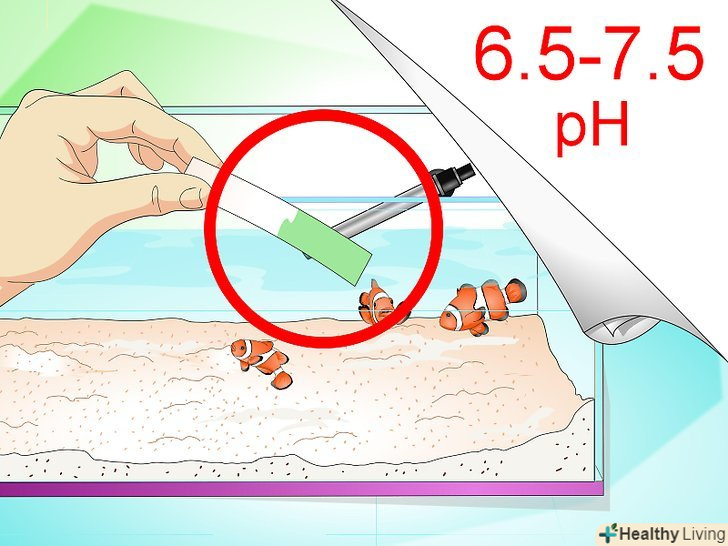 Підтримуйте постійний рівень pH води. різкі зміни рівня pH акваріумної води викличуть у рибок стрес. Слідкуйте, щоб рівень pH знаходився в інтервалі 6,5–7,5. Такий рівень оптимальний для більшості акваріумних рибок.- З часом кислотність акваріумної води збільшується, оскільки в ній накопичуються нітрати. Рівень pH можна підвищити або знизити за допомогою таких речовин, як соляна або фосфорна кислота. Фосфорна кислота збільшує вміст фосфатів і сприяє зростанню водоростей.