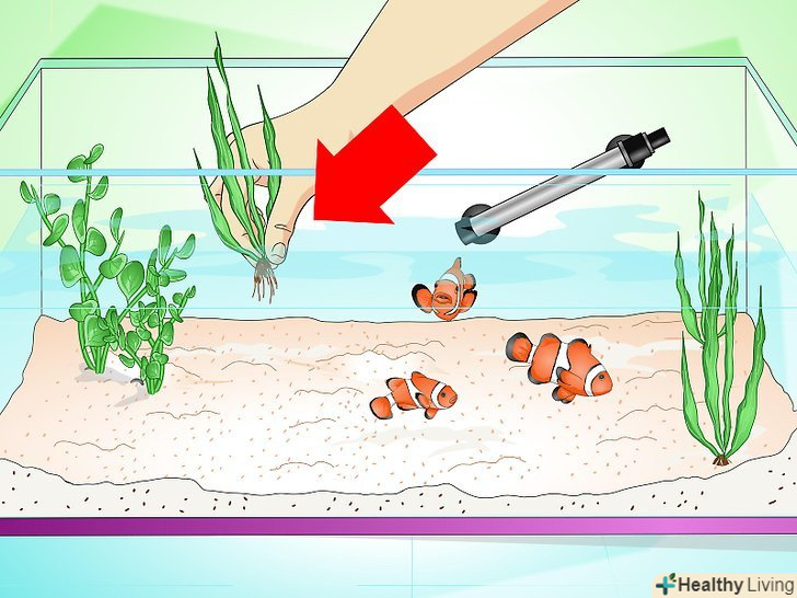 Додайте рослини. Акваріумні рослини допомагають встановити в акваріумі природну екосистему, захищають рибок від хвороб, виділяють кисень, перешкоджають надмірному росту водоростей і очищають воду. Крім того, вони прикрашають Акваріум! [12]