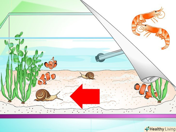 Підселіть в акваріум харчуються водоростями тварин. ці тварини обмежать зростання шкідливих водоростей, що принесе користь рибкам. Підселіть в акваріум креветок, равликів і харчуються водоростями риб. [15]