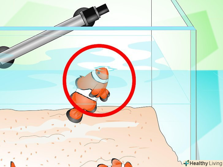 Зверніть увагу на симптоми стресу. при стресі рибки поводяться не так, як зазвичай. Вони пригнічені, втрачають апетит, ховаються, їх плавники опущені, на їх тілі можуть з'явитися виразки.- Якщо рибка тримається біля поверхні води і жадібно ковтає повітря, це означає, що їй, мабуть, не вистачає кисню. Така поведінка може пояснюватися поганою вентиляцією води, пошкодженням зябер або наявністю токсинів в акваріумний воді.