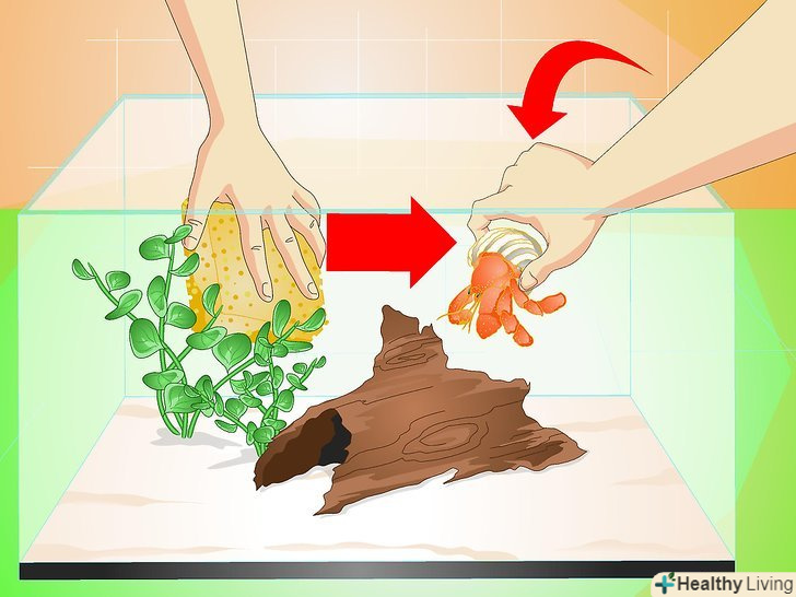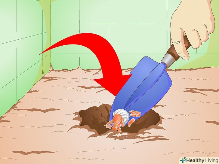 Ізолюйте линяющего раку від його побратимів. оскільки при линьку раки-відлюдники малорухливі і мають м'який новий панцир, в цей період вони схильні до стресу і пошкоджень з боку інших раків. Якщо в акваріумі знаходиться кілька раків і один з них линяє, пересадите його в тимчасовий "карантинний акваріум", щоб забезпечити йому усамітнення і безпеку. Під час линьки ракам-відлюдникам необхідний спокій. [5]- Якщо у вас лише один акваріум, спорудити в ньому "ізольовану осередок". Візьміть 2-літрову пластикову пляшку, відріжте краї і занурте її в пісок, щоб захистити линяющего раку. Простежте, щоб таке імпровізоване притулок було відкрито зверху — це необхідно для вільного надходження кисню.