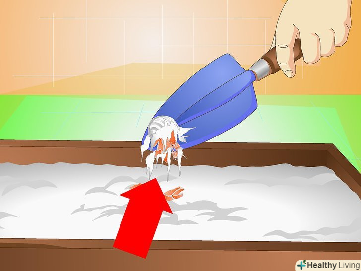 Поховайте померлого рака. якщо ви не можете просто взяти і викинути залишки вашого домашнього улюбленця, подумайте про копання їх у землю. Це ваше особисте рішення, тому дійте так, як вважаєте за потрібне. Закопайте останки досить глибоко, щоб до них не могли дістатися Інші Тварини (собаки, кішки і так далі).- Поховайте рака разом з піском з його клітини або акваріума. Пісок може бути забруднений, і краще зарити його разом з останками тварини.
