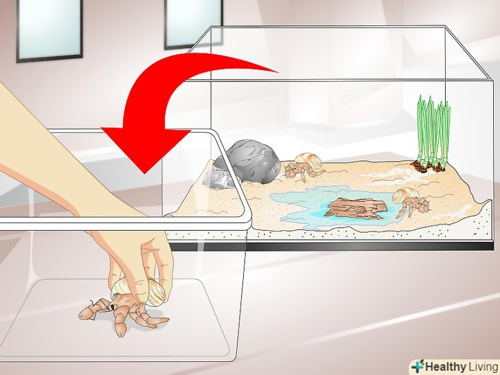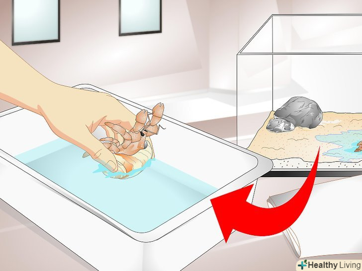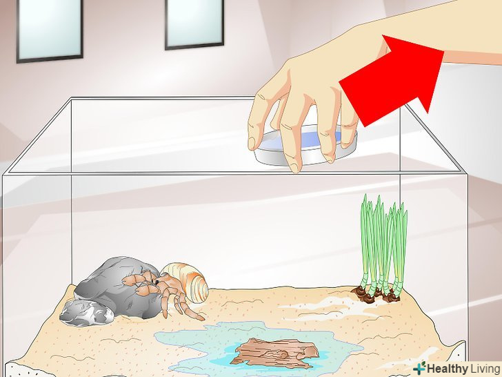 Знищуйте кліщів. хоча існують різні точки зору щодо того, як слід позбавляти раків-відлюдників від шкідливих кліщів, є два основних способи. [30] можна купати рака-відлюдника або додавати в акваріум нешкідливих кліщів, які поїдають своїх шкідливих побратимів. [31]- Якщо ви вирішили купати рака-відлюдника , робіть це обережно. Налийте в якусь ємність дехлорированную трохи теплу воду і обережно опустіть в неї рака. Рак-відлюдник може забратися в воду і самостійно. [32] Слідкуйте за своїм вихованцем і приблизно через хвилину дістаньте його з води. [33] якщо на раковині залишилася вода, акуратно промокніть її, після чого посадіть рака в окрему коробку або на паперовий рушник і дайте йому висохнути. [34] після того, як тварина висохне, помістіть його назад в акваріум. [35]