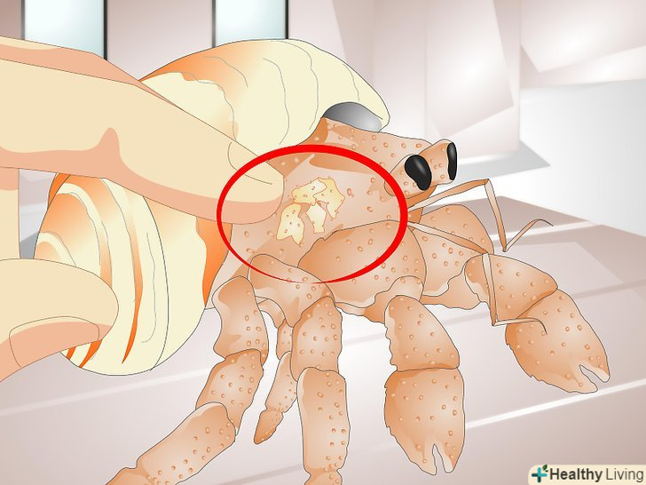 Зверніть увагу на сухість покривів тіла. Для того, щоб поверхня тіла раків-відлюдників залишалася вологою і здоровою, їм необхідний вільний доступ до води. Слідкуйте за тим, щоб кутикула вашого вихованця залишалася вологою — це необхідно тварині для нормального дихання. [3] Про сухість покривів тіла можуть свідчити такі ознаки:- Недолік води в акваріумі або в губці