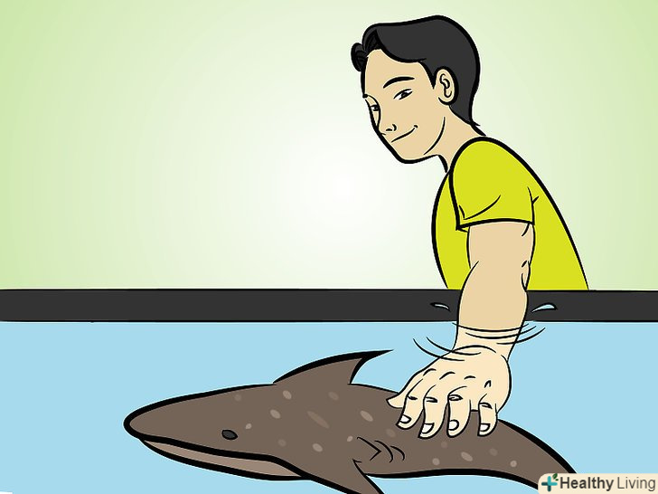 - Проявляйте повагу до акул. Не вступайте з ними в протистояння, не наближайтеся до них і не дражніть. Вони не нападуть на вас через присутність у воді, але вам необхідно усвідомити, що вони можуть бути небезпечні і відносяться до хижаків. Спроба поспілкуватися з акулою, доторкнутися до неї, поцілувати або покататися на ній може привести до отримання травм. [34]