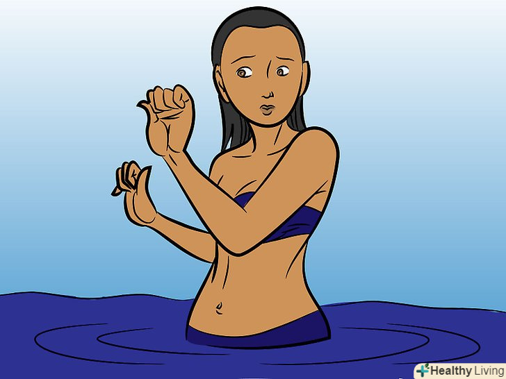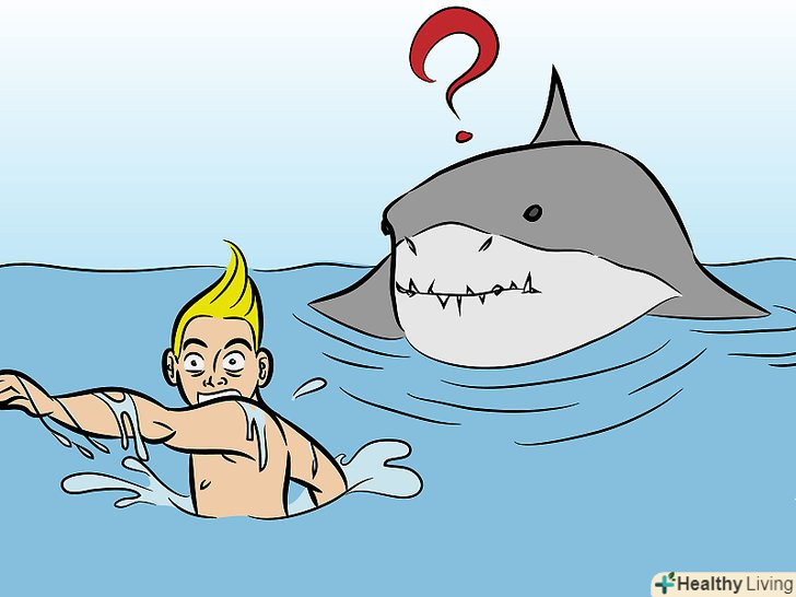 Не панікуйте у воді. якщо ви помітите неподалік акулу, яка може бути небезпечною (наприклад, білу, тигрову або тупорилу), не починайте панікувати. Акул залучають раптові часті сплески води, так як вони схожі на звуки, створювані рибами, тому акула може переплутати вас зі звичайною здобиччю.- Постарайтеся віддалитися від акули максимально спокійно і повільно. Проте, якщо акула вас переслідує, пливіть швидко. [31]