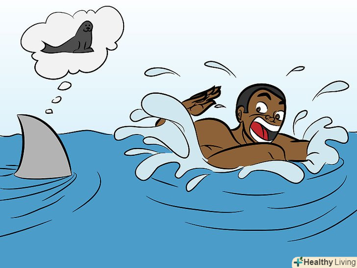 Зрозумійте, що акули не харчуються людьми. людина не входить в звичний план харчування акули. Немає свідчень того, що існують акули, які харчуються саме людьми. Людський організм містить занадто багато кісток і мало жиру, щоб зацікавити акулу. Акула швидше віддасть перевагу перекусити тюленем або морською черепахою, ніж людиною. [3]