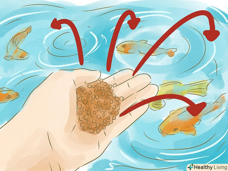 - Якщо ви збираєтеся годувати з руки, покладіть корм в руку, і нехай риба запливає на руку і бере корм з неї. Не продовжуйте спроби далі, якщо риби занадто боязкі і так не їдять. Такі спроби можуть викликати стрес у деяких видів риб.