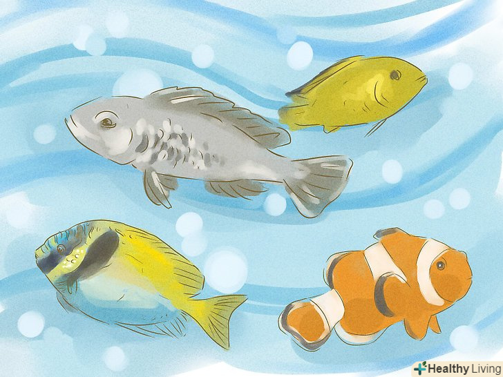 Відстежуйте можливі проблеми, якщо у вас різні види риб. якщо у вас в акваріумі є риби, які годуються в різних частинах акваріума або їдять різні види кормів, вам швидше за все доведеться купувати кілька видів кормів. Уважно спостерігайте за годуванням в акваріумі з різними видами риб, коли даєте їм новий корм. Можливо, вам доведеться знайти свою комбінацію кормів або часу годування, якщо риба на поверхні з'їдає всю їжу, призначену для риб на дні. Якщо деякі види риб у вашому акваріумі активні вночі, а деякі – вдень, ви можете годувати їх в різний час, щоб всі види риб отримали свій корм. [13]