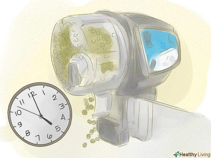 Подумайте про можливі варіанти, коли ви у відпустці або у відрядженні. залишити дорослих риб на кілька днів без їжі майже завжди безпечно, і якщо ви почитаєте про своїх риб в Інтернеті, ви можете дізнатися, що вони можуть з мінімальними ризиками обійтися без їжі один-два тижні. [14] для тривалих поїздок або для молодняка з більш високими потребами в їжі, вам доведеться знайти спосіб годувати їх, поки ви у від'їзді. Нижче запропоновані можливі варіанти: [15]- Використовуйте автоматичну годівницю, яка буде видавати корм через певний час. Переконайтеся, що ви залишили достатньо корму на весь час своєї відсутності і виставили час для годування раз або два рази на добу.