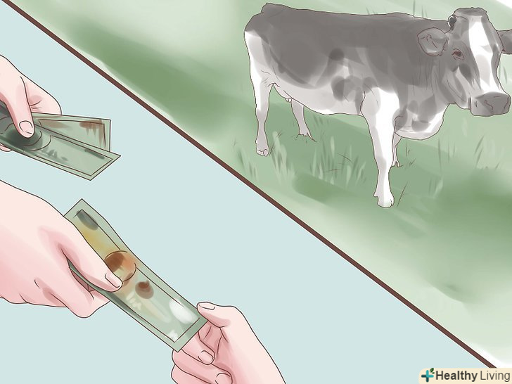 Подумайте, скільки ви готові витратити на корову. молочні корови простих порід зазвичай дешевше, але вони можуть давати не так багато молока, як вам потрібно. Будьте уважні, корова може накульгувати або бути стерильною. Якщо ви початківець фермер, краще бути уважнішими і не купувати корів, з якими можуть бути проблеми. Якщо ви фермер-любитель, можливо, вам буде не шкода витрачених грошей і зусиль, адже результат не змусить себе чекати.- Найбільш популярні породи корів, швидше за все, будуть дешевше, ніж рідкісні породи. Наприклад, голландська оперізована або канадська корова може бути дорожчою, ніж хороша гольштейнська корова.