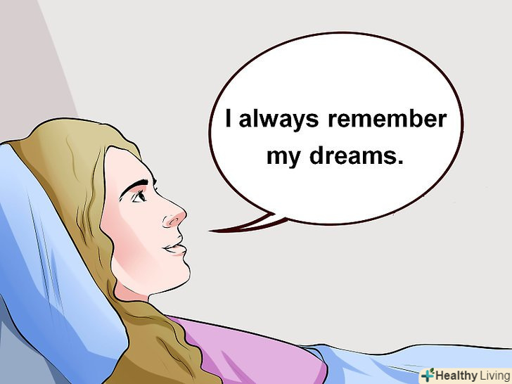Використовуйте позитивні афірмації. перед тим, як лягти спати, скажіть собі: "я завжди запам'ятовую свої сни". Повторюйте це кожен раз перед сном. Це допоможе вам звернути свій розум до усвідомлених сновидінь і шаманського символізму. Згодом ви зможете дійсно запам'ятовувати свої сни. [12]
