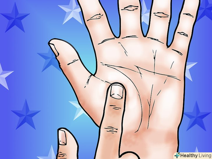 Розташування. важливо також відзначити, як пальці розташовані по відношенню один до одного. Подивіться, як деякі пальці стоять в розслабленому положенні відносно один одного, по відношенню до сусідніх пальцях.- Якщо ваш середній палець і вказівний палець знаходяться близько один до одного, це показує, що у вас будуть авторитет і визнання завдяки вашим власним цілям і мріям. Якщо вони стоять окремо, то ви будете домагатися своїх цілей інакше.