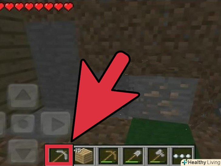 Продовжуйте орудувати киркою, поки не викопаєте 14 блоків каменю (cobblestone).