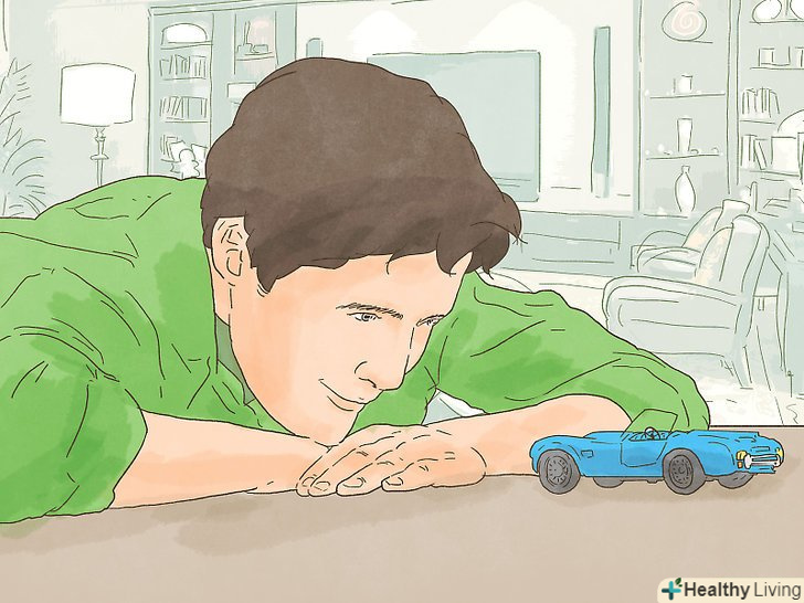Відчуйте радість від наявності предмета, ніби він у вас вже є. Сядьте в спокійному місці і створіть уявний образ того, як ви тримаєте такий предмет в своїх руках. Якщо ваше бажання являє собою не предмет, а стан (наприклад, здоров'я і підтягнутість), то уявіть себе в такому стані. Намалюйте максимально повну картину. На що це схоже? Що саме ви відчуваєте? Які у вас відчуття? Що ви будете з цим робити? Такий процес називається візуалізацією. Він також використовується і в інших діях. [5]- Наприклад, якщо ви хочете отримати підвищення, то вам слід представити своє життя після такого підвищення. Уявіть, як ви щоранку їдете на роботу, в який офіс заходите. Чим ви будете займатися? Ким ви будете керувати і які завдання ставити перед підлеглими?