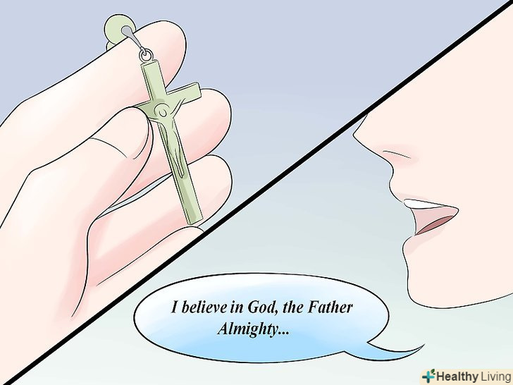 Прочитайте "Вірую в Бога" (Апостольський символ віри ). ця молитва уособлює собою вираз християнської віри – тобто всього, у що вірять християни, в тому числі в існування Бога, Ісуса, Святого Духа і Воскресіння Христа.- Слова молитви " Вірую в Бога»: «Вірую в Бога, Отця Всемогутнього, Творця неба і землі. І в Ісуса Христа, єдиного Його Сина, Господа нашого, який був зачатий Святим Духом, народжений Дівою Марією, страждав при Понтії Пилаті, був розп'ятий, помер і був похований, зійшов в пекло, в третій день воскрес з мертвих, піднявся на небеса і сидить праворуч Бога Отця Всемогутнього і звідти прийде судити живих і мертвих. Вірую в Святого Духа, святу Католицьку Церкву, спілкування святих, прощення гріхів, воскресіння тіла, життя вічне. Амінь» .