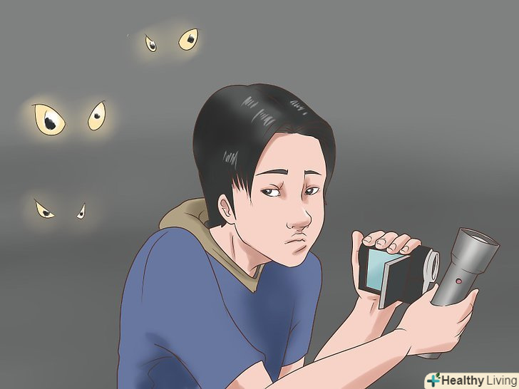Записуйте відео. це досить поширена процедура під час полювання на привидів. Використовувати можна будь-який відповідний записуючий пристрій: відеокамеру, телефон, і ін. краще записувати відео у високій роздільній здатності, щоб потім ретельно досліджувати кадри аж до дрібниць. В цьому випадку камера мобільного телефону - не найкращий варіант.- Можете використовувати режим нічного бачення на своїй камері або висвітлювати простір ліхтариком, щоб більш детально зафіксувати все, що відбувається. Вибір за вами.