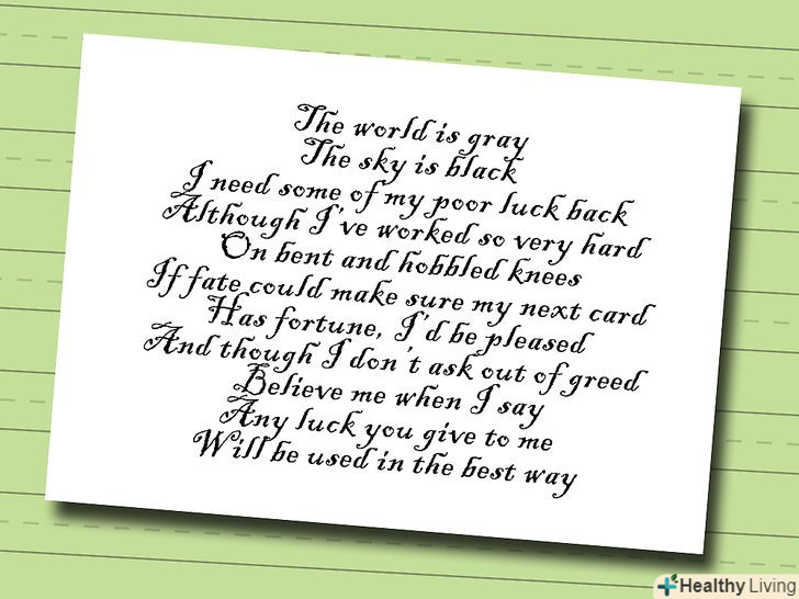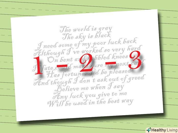 Запишіть ваші вимовлені слова. щоб ваші слова і думки стали сильнішими, ви можете написати ваше заклинання в риму і проговорити вголос; це робиться для більш легкого запам'ятовування заклинання. Можна також скандувати свої заклинання, щоб посилити енергію.
