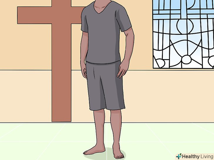 Подбайте про те, щоб охрещуваний були належно одягнені. Перед тим як зробити хрещення, перевірте, як одягнений охрещуваний. Білий одяг повинен бути з досить щільної тканини, щоб вона не просвічувала. Якщо одяг вільного крою, простежте, щоб вона не майоріла і ділянки тіла випадково не оголилися. Шорти підійдуть краще, ніж штани, так як вони вберуть в себе менше води. [2]- Найчастіше для хрещення найкраще підходить темна облягаючий одяг. У деяких церквах існує спеціальний одяг для хрещення.