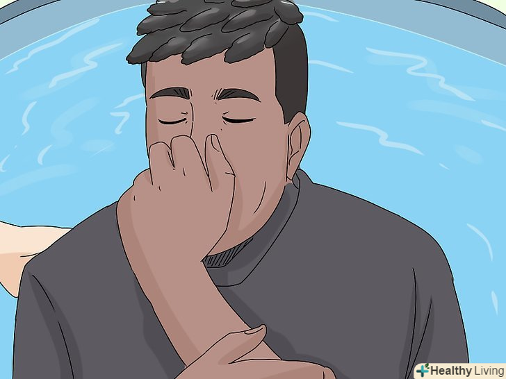 Підкажіть крещаемому, щоб він затиснув ніс. після сповідання віри Запропонуйте крещаемому затиснути ніс, щоб при зануренні під воду вона не потрапила туди. Це не обов'язково, але багато хто воліє так робити. [6]- Якщо людина не хоче затискати ніс, запропонуйте йому схрестити руки на грудях.