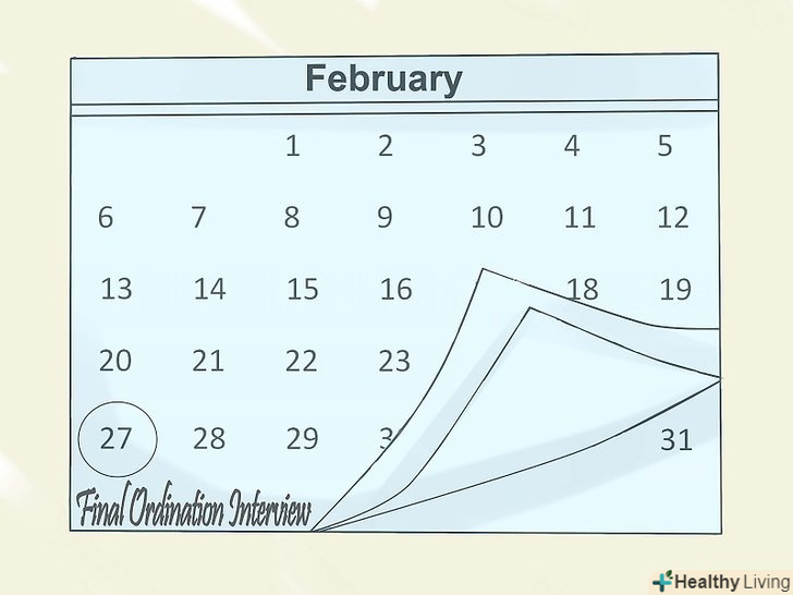 Включіть в розклад заключну зустріч про посвячення в сан. церковний комітет неодмінно захоче вас опитати перед тим, як прийняти рішення, чи готові ви стати преподобним. Якщо ви завершили всі кроки, ви, безсумнівно, пройдете це випробування, але до нього необхідно серйозно підготуватися.- Ваше прохання про висвячення буде обговорено під час зустрічі. Комітет може також попросити вас внести ясність або описати нюанси, які недостатньо розкриті в листі.